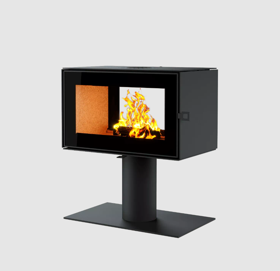 Дверца — прямое стекло с боковым открыванием. Шелкография завершает обрамление очага, гармонируя с внутренним убранством топочной части. Вы будете чувствовать себя комфортно, даже если очаг горит круглосуточно.